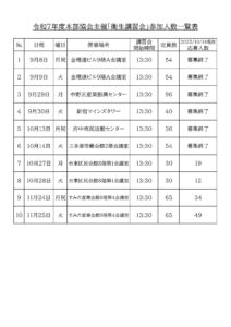令和7年度「衛生講習会」 日程・会場・参加人数一覧を10月14日現在に更新しました。